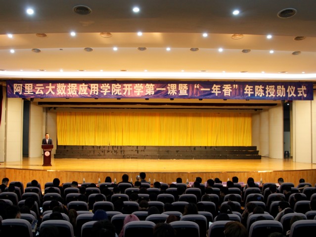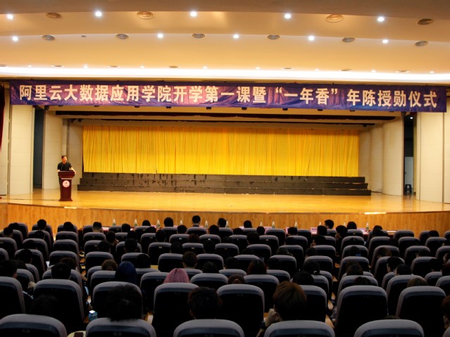 为帮助同学们充分了解阿里云大数据应用学院专业背景,充分发挥政府、学校及社会三方的资源优势,做好校企合作产教融合的新实践,阿里云大数据应用学院于11月12日下午4时在音乐舞蹈学院音乐厅组织召开开学第一课暨“一年香”年陈授勋仪式。本次参会人员有:阿里云大数据应用学院院长吕威,阿里云大学认证讲师吴翔,慧科集团副总裁杜术清,慧科集团闽粤校区负责人胡淑滨,慧科集团广东区负责人蒋菲菲,阿里云大数据应用学院学生办公室主任高俊晗,学院团委书记梁津铭,学院教学秘书芦思涵,慧科集团资深讲师李亚栋,慧科集团驻校运营班主任赵歆欣、丁慧以及阿里云大数据应用学院全体学生。