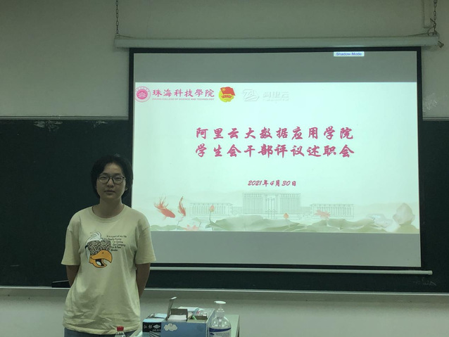 图4 阿里云大数据应用学院学生会秘书长段颖芯述职现场