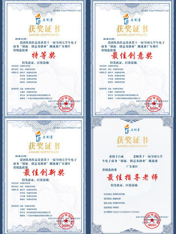 图:第十一届全国大学生电子商务“创新、创意及创业”挑战赛广东省赛区获奖证书