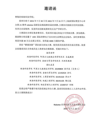 我校阿里云大数据应用学院学生张宇辰、金融与贸易学院学生余屹、工商管理学院学生李汉平、物流管理与工程学院学生刘畅组成的代表团队“鹏巢创新”受邀参加本次高水平亚洲赛事竞技,在诸多队伍中脱颖而出,荣获成年组创新赛道第21赛季robotex创新创业挑战赛首届亚洲赛季军并并成功取得爱沙尼亚国际总决赛参赛资格。该团队由吕威、沈颂东教授担任校内指导老师,我院校企联合共建方之一慧科教育科技集团有限公司的副总裁杜术清担任企业指导老师。