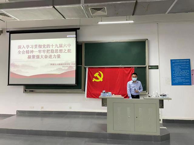 为教育引导我院青年学生深刻认识党的百年奋斗重大成就和历史经验的重大意义,深刻认识中国特色社会主义新时代的历史性成就和历史性变革,从党的百年奋斗历程中汲取智慧和力量,根据学校党委统一部署,2022年3月16日,阿里云大数据应用学院组织开展2022年春季学期第一堂思想政治理论课。阿里云大数据应用学院院长吕威教授为学院2021级全体学生讲授以《深入学习贯彻党的十九届六中全会精神--牢牢把稳思想之舵 凝聚强大奋进力量》为题的第一堂思想政治理论课。