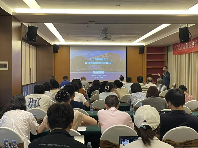 理论培训由华南理工大学计算机学院余志文教授(博导)主讲。培训中,余教授系统梳理了人工智能发展的三次浪潮,重点解读了DeepSeek+系列大模型的技术架构与核心优势, 同时结合教学科研实际场景,详细阐述了大模型在文献综述撰写、实验设计优化、论文内容创作、成果可视化等环节的应用路径。他指出,大模型可通过语义理解与生成式回答,辅助教师高效整合文献资源、提炼研究热点;还能基于海量数据推荐实验方法、优化技术路线,显著提升科研效率。